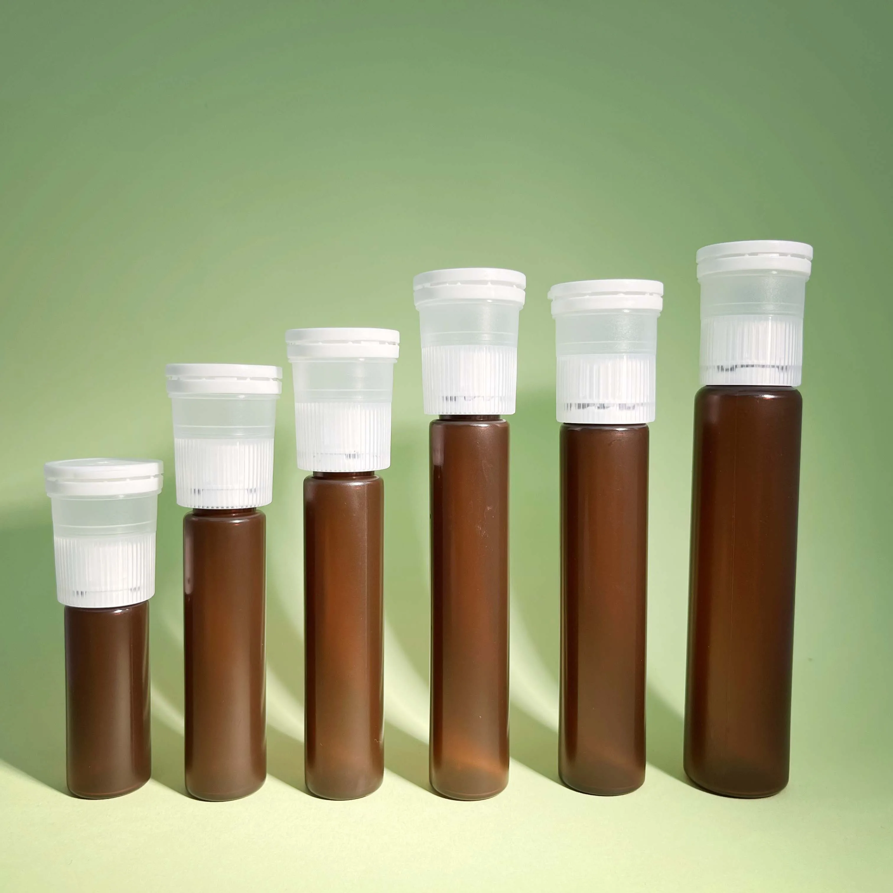 großhandel 20ml 30ml 40ml 50ml 60ml 80ml 100ml 120ml Bernsteinfarbene Glasflaschen mit flachen Schultern und schwarzem Serum-Pumpenverschluss